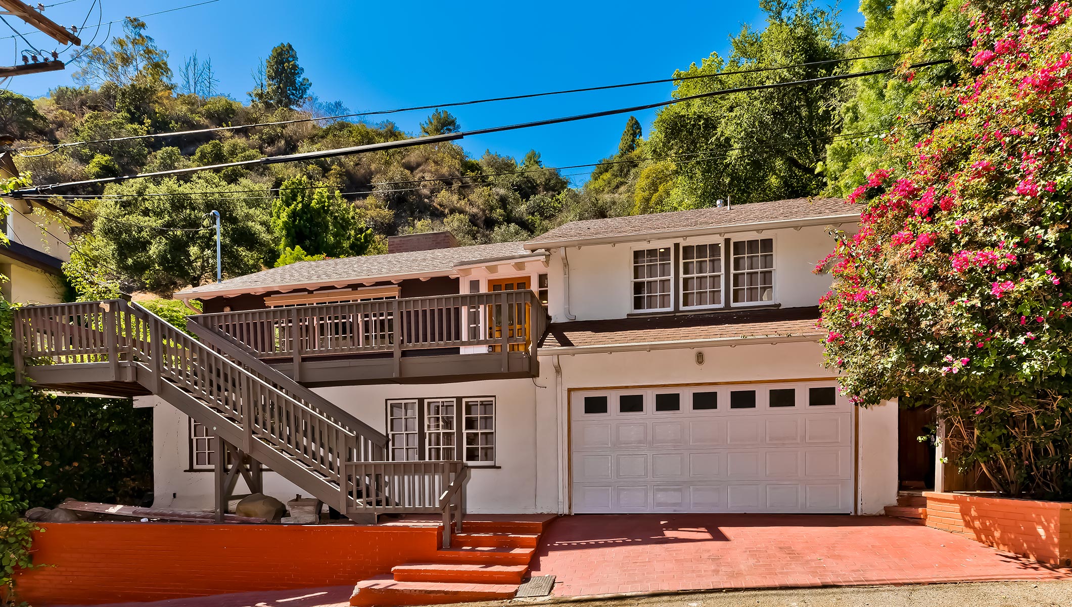 Located on a quiet cul- de -sac with lots of mature trees in BHPO area. This quaint hideaway in the hills offers privacy and seclusion for a sense of escape from the city below. 4 bedrooms, 2.5 Baths. Charming living room, wooden beam with fireplace, dining area, and updated kitchen with breakfast area all open thru French doors two the enclosed backyard which is provides privacy and serenity. Split level 2 bedrooms upstairs & 2 bedroom downstairs with new flooring. Large laundry room with washer & dryer, and ample storage cabinets. Attached garage has two parking spaces which is ideal for this canyon location. Easy to show. Public record shows 3 bedrooms.
